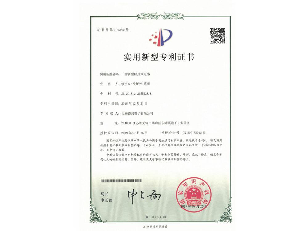 實(shí)用新型專利證書